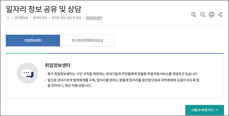 광주시 북구 취업정보센터 정보 및 구인구직 바로가기